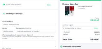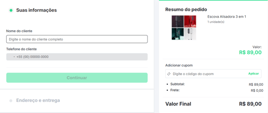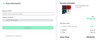Após preencher o seu nome e telefone, você colocará as informações do local da entrega.